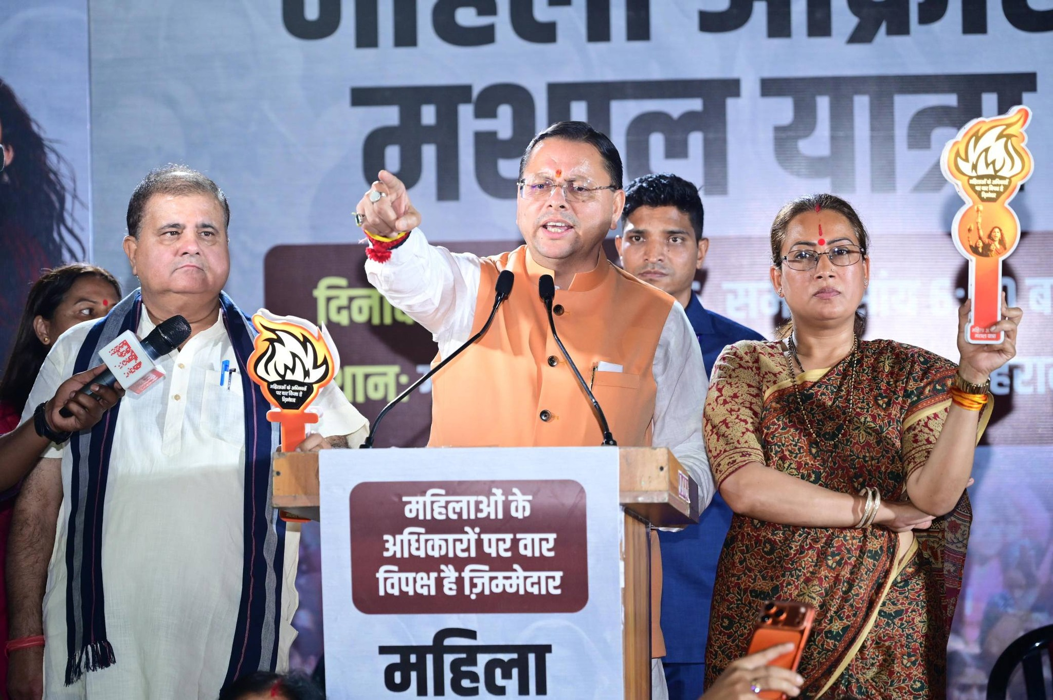 उत्तराखंड के मुख्यमंत्री पुष्कर सिंह धामी के नेतृत्व में भाजपा महिला मोर्चा और कार्यकर्ताओं ने देहरादून में एक विशाल मशाल जुलूस निकाला। गांधी पार्क से घंटाघर तक आयोजित इस ‘मशाल आक्रोश यात्रा’ में हजारों की संख्या में महिलाओं ने भाग लिया। इस प्रदर्शन का मुख्य उद्देश्य महिला आरक्षण के मुद्दे पर विपक्ष के प्रति अपना विरोध दर्ज कराना और महिला सशक्तिकरण का संदेश देना था। मुख्यमंत्री ने इस दौरान कहा कि महिलाएं अब विपक्ष की राजनीति को समझ चुकी हैं और समाज की दिशा तय करने वाली एक निर्णायक शक्ति बन चुकी हैं।