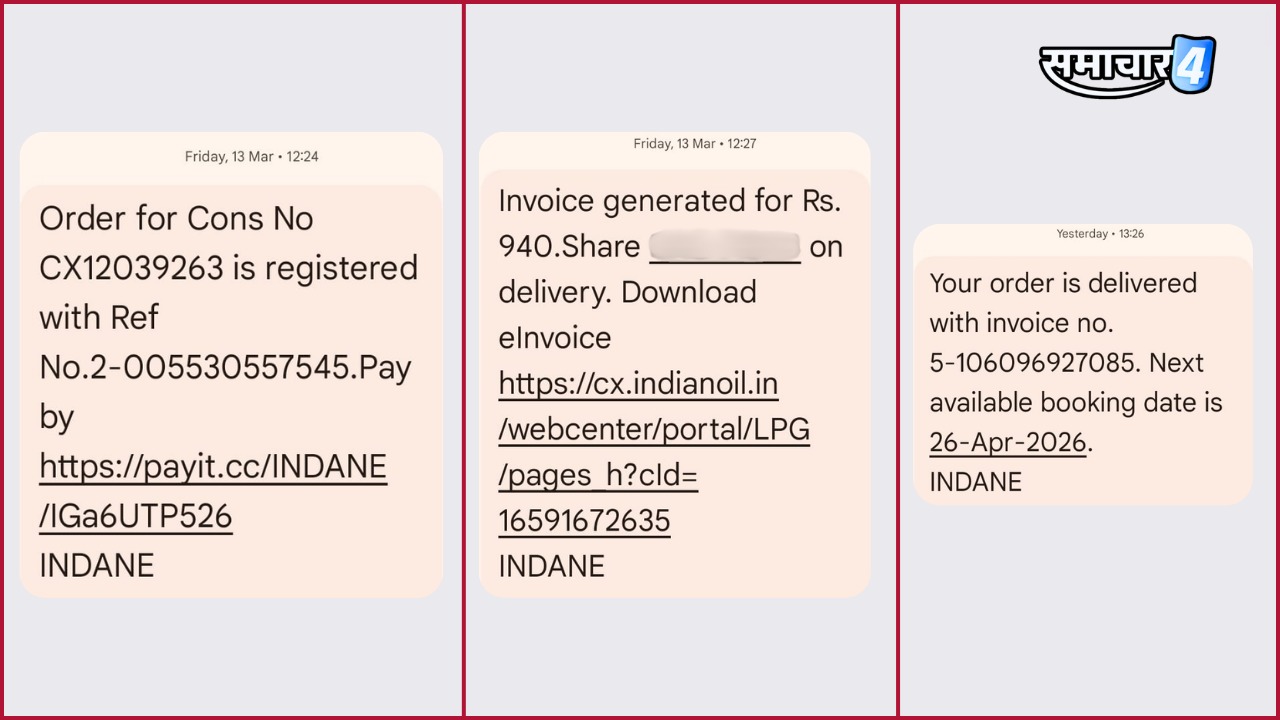 ऑयल कंपनी दूसरे सिलेंडर की बुकिंग की तरीख भेज चुकी हैं कि आप 26 अप्रैल को फिर एलपीजी रिफिल के लिए बुक करवा सकते हो। जबकि आलम ये है कि उपभोक्ता को पहली बुकिंग का सिलेंडर भी डिलीवर नहीं हुआ है। हकीकत ये है कि 13 मार्च को बुक किया हुआ सिलेंडर खबर लिखने तक कस्टमर को डिलीवर नहीं किया गया है। जबकि कंपनी का मैसेज है कि आपको सिलेंडर डिलीवर हो गया है। अगर से सच है तो फिर सवाल बड़ा हो जाता है कि आखिर सिलेंडर किसे दिया गया है। असली उपभोक्ता को या फिर किसी तिकड़मबाज को।